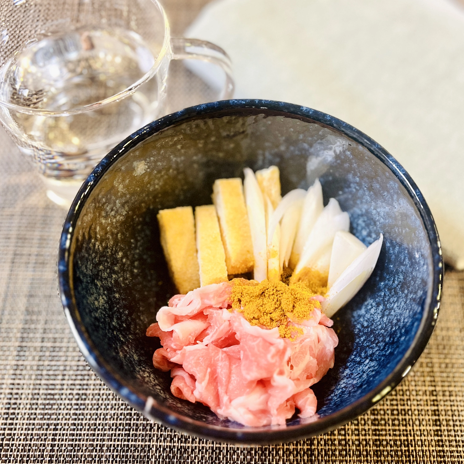 豚肉に火が通っていたらおだしでポタ。を加えてよく混ぜ、 ラップをかけずにさらに1分加熱。