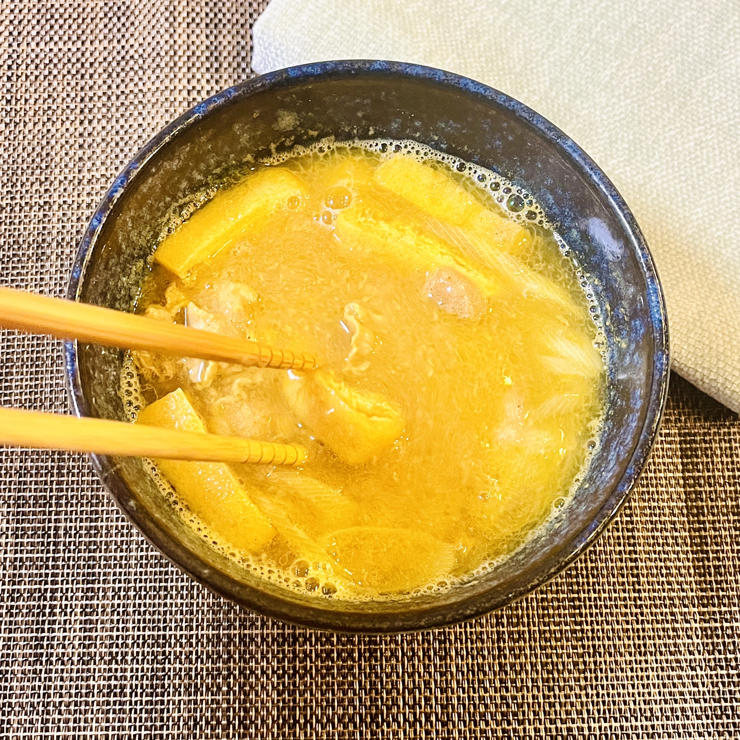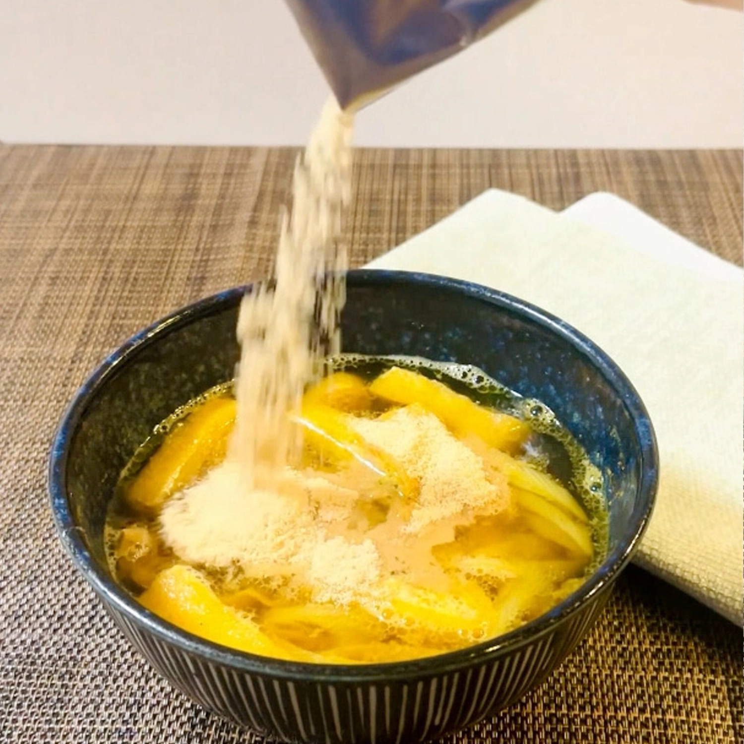 耐熱の器に【A】を入れて混ぜ、 ラップをかけずに600wの電子レンジで4分加熱。