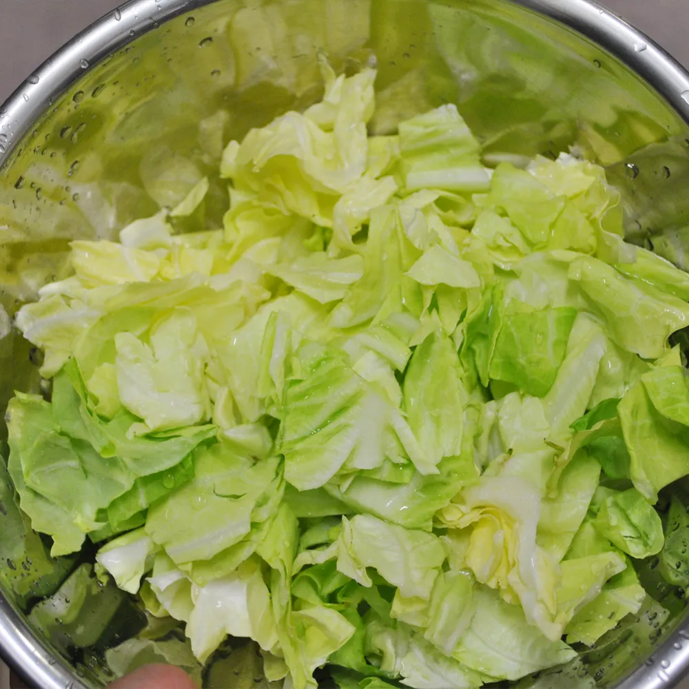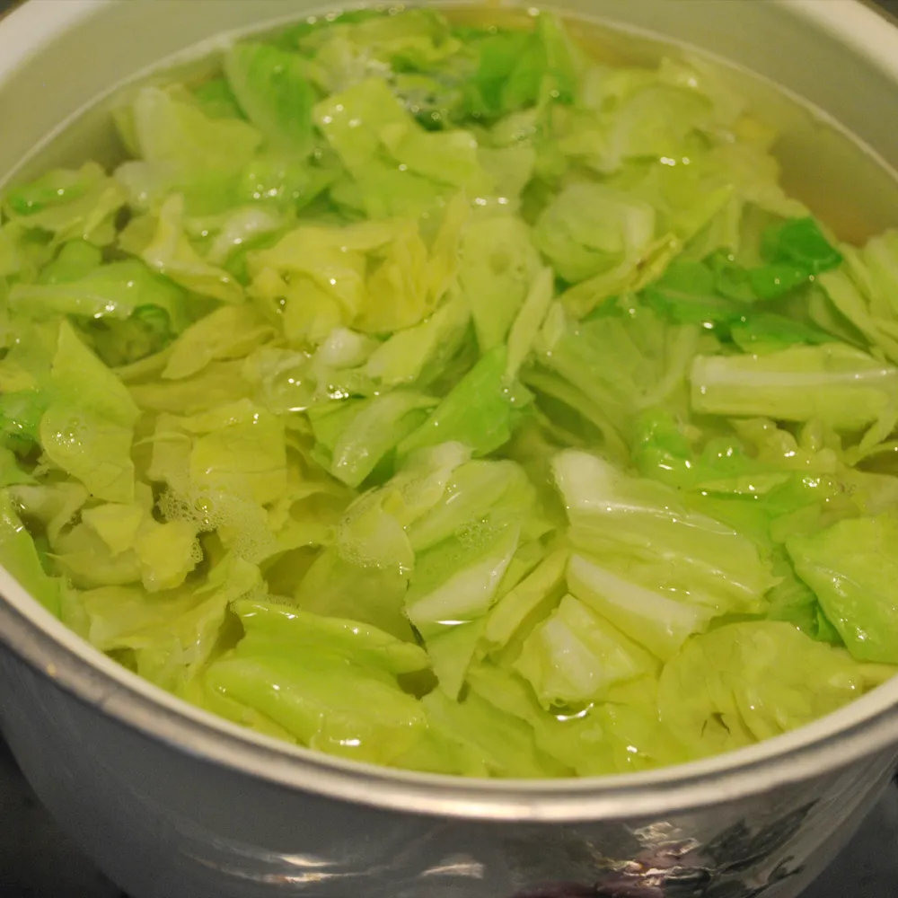 商品の記載通りにパスタを茹で、 茹で上がりの1分半~2分前にキャベツを入れて、 1分前にパスタごとザルにあげて水気を切る。