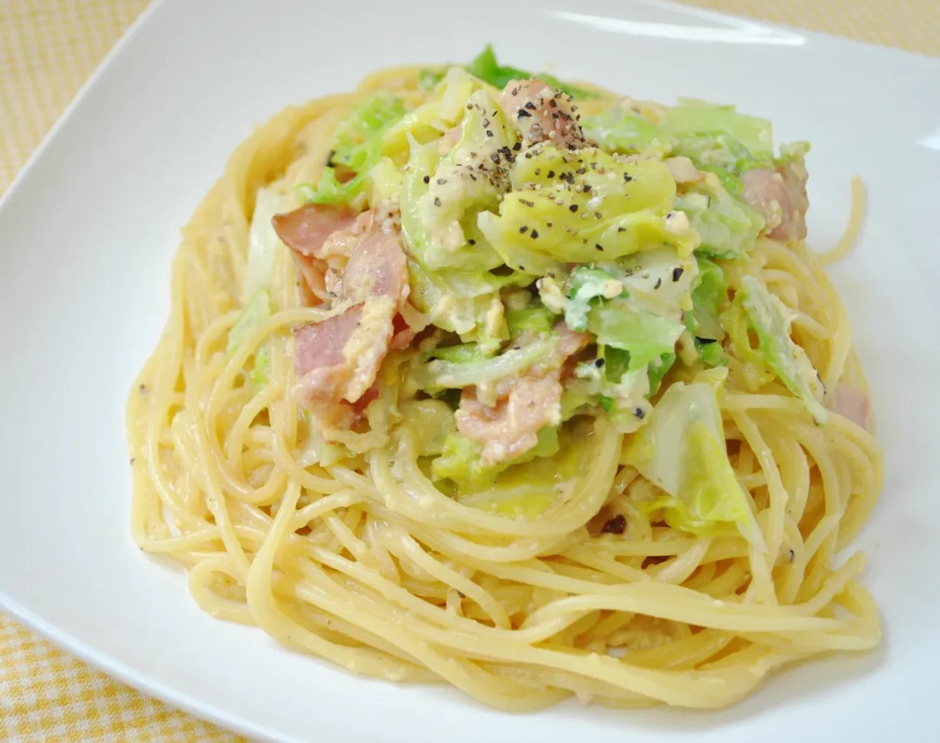 ・春キャベツは一口大に切る。 ・にんにくはみじん切り、ベーコンは1cm幅に切る。 ・【A】を混ぜ合わせておく。